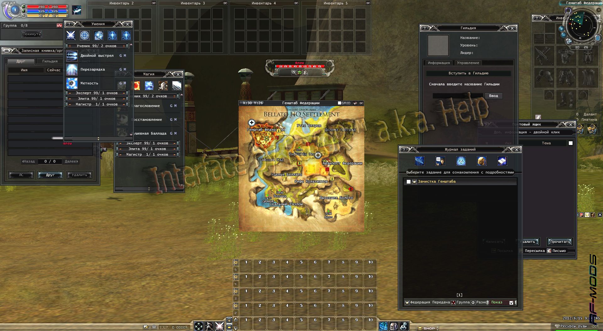 - прозрачность панели быстрого доступа и окна инвентаря, радара( кроме табло) , окна с выборами, панели с лвл/хп-фп-сп